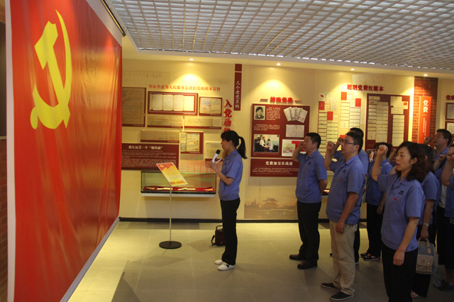 當天上午9:00,集團公司各支部黨員代表身著統(tǒng)一工作服,佩戴黨徽,集中前往荊州市委黨校。在講解人員的帶領(lǐng)下,黨員們參觀了“入黨記憶”主題展,全面而系統(tǒng)地了解了黨徽、黨旗、入黨誓詞的發(fā)展和演變歷史。在“入黨介紹人”及“用生命踐行誓言”等展板前,黨員們紛紛駐足,認真聆聽講解人員的詳細介紹,感受身邊的真實事跡帶來的感動,同時也重溫自己的入黨記憶。一個小時的參觀后,黨員們在黨旗前集體重溫入黨誓詞,“為共產(chǎn)主義奮斗終身”的誓言激蕩人心。隨后,集團公司總經(jīng)理助理葛世玉宣讀了公司“七一”表彰文件,常務(wù)副總經(jīng)理唐志國為獲表彰的黨小組及黨員頒獎?;顒幼詈螅悬h員共同在題有“始終牢記黨員身份,做合格黨員”的簽名板上簽名,以此表示始終對黨忠誠、永不叛黨的崇高志愿。