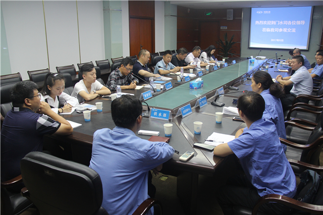 9月7日,荊門(mén)市供水總公司黨委副書(shū)記、紀(jì)委書(shū)記徐黎明蒞臨荊州水務(wù)參觀(guān)交流,集團(tuán)公司總經(jīng)理張勤,常務(wù)副總經(jīng)理唐志國(guó),總經(jīng)理助理葛世玉及客戶(hù)服務(wù)部、供水部及相關(guān)部門(mén)負(fù)責(zé)人參加了本次交流活動(dòng)。