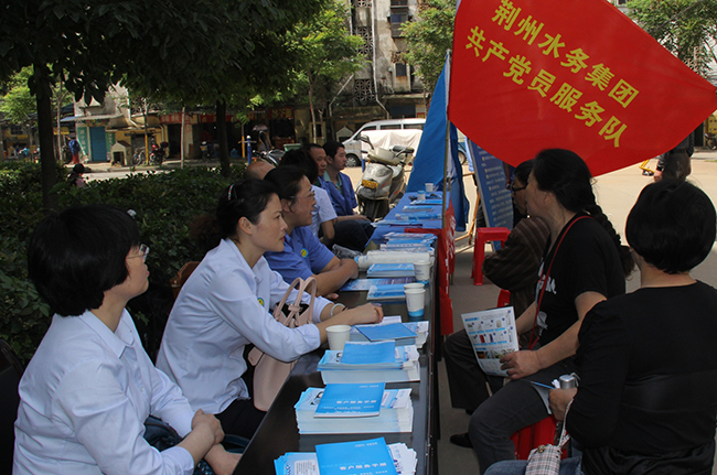 2016年,荊州水務(wù)集團(tuán)黨委結(jié)合“兩學(xué)一做”學(xué)習(xí)教育,組織開展了“上善若水映黨徽”黨小組建設(shè)活動(dòng),每月開展“特色黨日”活動(dòng)。黨委所屬4個(gè)支部16個(gè)黨小組結(jié)合崗位特色分別有計(jì)劃地開展了“走進(jìn)養(yǎng)老院、唱紅歌”活動(dòng);走進(jìn)社區(qū)、學(xué)校,為居民現(xiàn)場答疑解惑,宣講水質(zhì)知識(shí);對(duì)寶塔灣江邊 “救命一米線”進(jìn)行加固,為江邊游玩居民提供生命安全保障;配合“創(chuàng)衛(wèi)”對(duì)黃家塘、梅臺(tái)巷、文化坊、張居正街、屈原路等小區(qū)的老舊表箱進(jìn)行整改更換;開展“包路”道路清掃;牽手九店小學(xué),關(guān)愛留守兒童;崗位攻堅(jiān)作奉獻(xiàn)等形式多樣的創(chuàng)先爭優(yōu)、關(guān)愛幫扶主題活動(dòng),積極營造團(tuán)結(jié)、奉獻(xiàn)、關(guān)愛、和諧的良好氛圍,用實(shí)際行動(dòng)映亮黨徽,用點(diǎn)滴情懷溫暖社會(huì)。