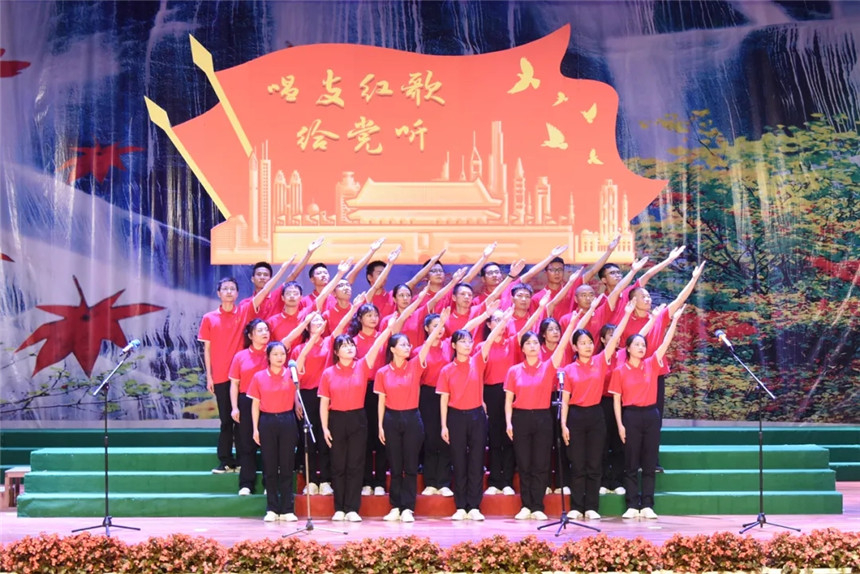 6月30日,荊州水務(wù)集團(tuán)在活動(dòng)中心一樓舉行“唱支紅歌給黨聽”——“七一”表彰大會(huì)。