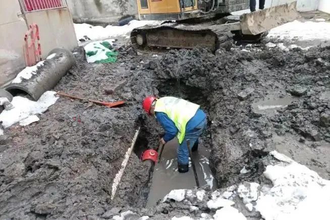 此時,園林北路也有一群忙碌的藍色身影,怡景園旁邊防控宿舍反映低壓無水,為保障居民安心過年,搶修員們已在這里探測管線尋找原因忙碌了一上午,最終決定采取微型管道改造,雖然天氣寒冷,可大家干得滿頭大汗,下午1點鐘完成施工,看著水龍頭噴涌出的自來水,用戶開心得不住道謝。