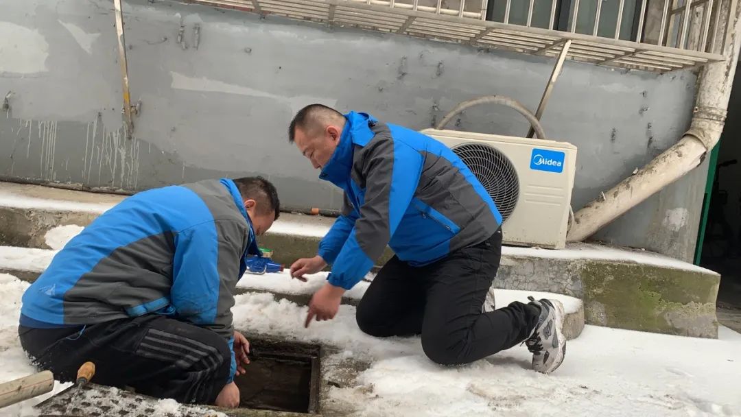 2月22日凌晨,荊州中心城區(qū)大范圍出現(xiàn)了凍雪情況,地面也已被厚厚的積雪覆蓋,室外溫度已降至-5℃,江漢客服中心的陳勁鵬和李剛師傅依舊頂風(fēng)冒雪穿梭在城市的大街小巷,為保障居民安全供水在雨雪中奮勇前行。