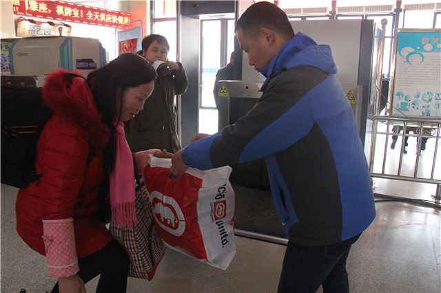 汽車(chē)站的旅客們行色匆匆,他們有外出打工返鄉(xiāng)的游子,也有從荊州出發(fā),踏上歸途的旅客。此次活動(dòng)安排的也十分貼心,荊州水務(wù)的志愿者們?cè)诮o過(guò)往行人送上春聯(lián)、“福”字同時(shí),還幫旅客們細(xì)心的裝進(jìn)行李之中,并結(jié)合全市正在開(kāi)展的“創(chuàng)文進(jìn)行時(shí)·暖冬在行動(dòng)”專(zhuān)項(xiàng)行動(dòng),為來(lái)往的旅客提供志愿服務(wù),幫助旅客們搬運(yùn)行李、購(gòu)票取票,幫助樞紐站站務(wù)人員共同維護(hù)現(xiàn)場(chǎng)秩序等。