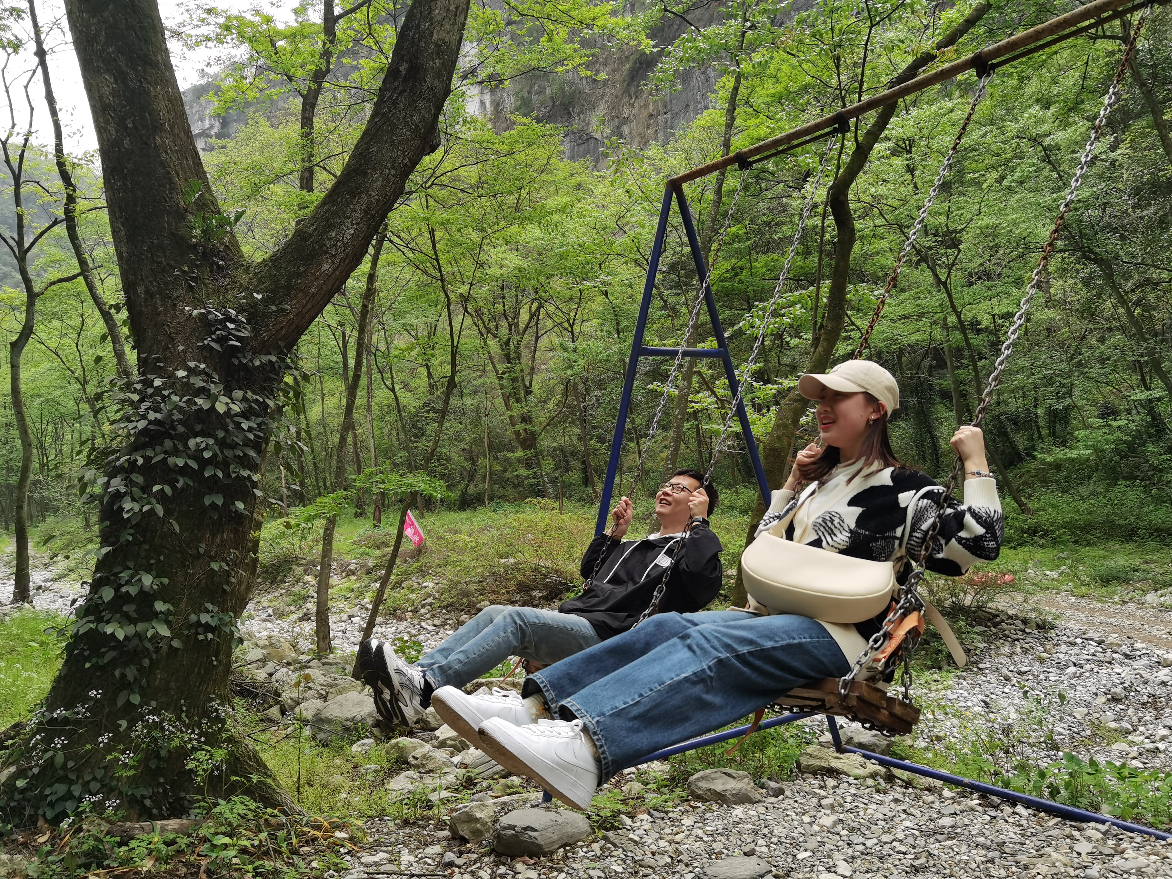 清清潭泉里,青年們體驗(yàn)到了與小生命互動的樂趣,恨不能與魚蝦同游;幽幽山林中,盈盈歡笑聲隨著秋千的擺動,在峽谷中久久回蕩……