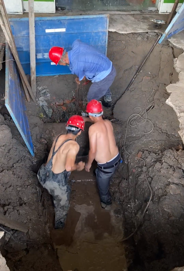 搶修負(fù)責(zé)人張凌告訴記者,由于天氣炎熱,再加上現(xiàn)場施工條件受限,導(dǎo)致開挖工作較為困難。為避免破壞附近的建筑物,只能放棄機(jī)械開挖,采用人工開挖作業(yè)。開挖是為下一步搶修提供條件,這是整個(gè)搶修工作中耗時(shí)最多的工序。