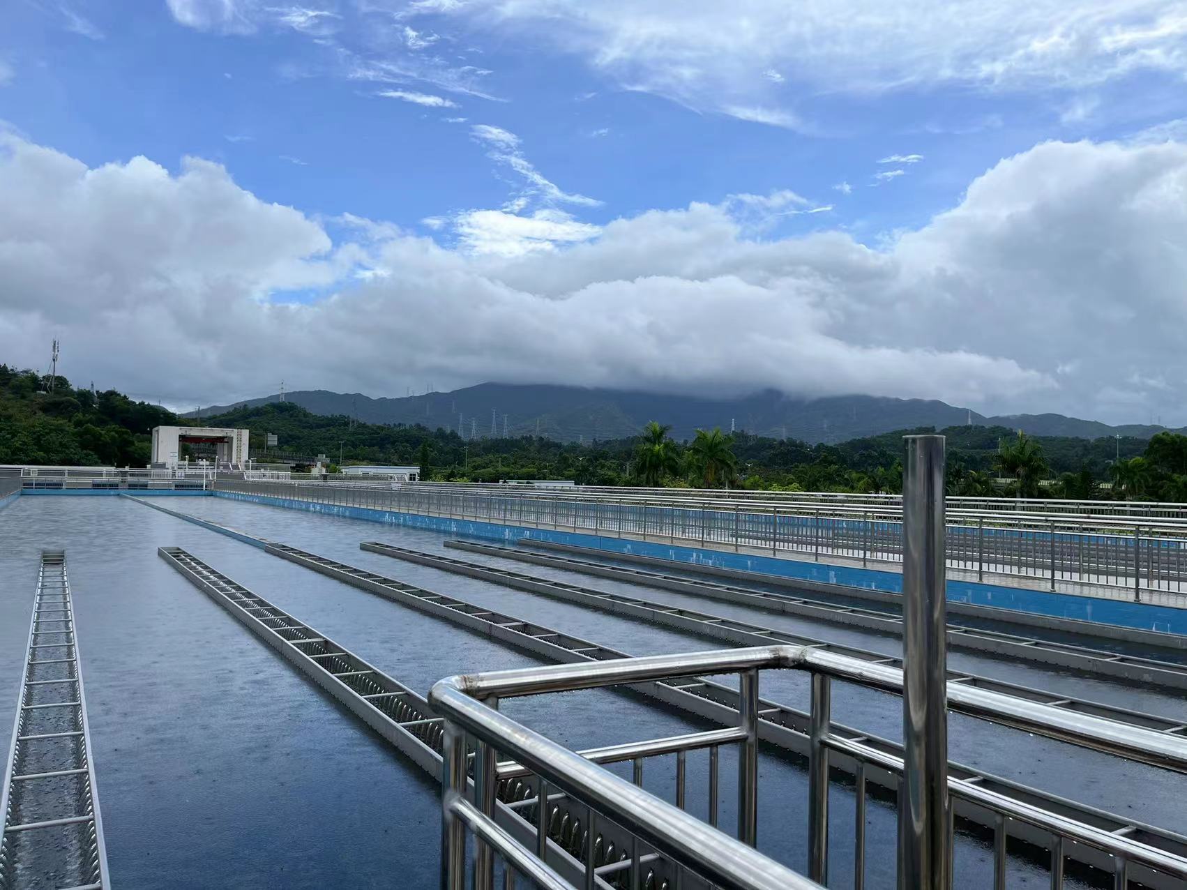 中心區(qū)的水廠二期剛建成不久,很多地方采用了新工藝新設(shè)備,來(lái)的第一天溢源這邊便組織了我們交流人員參觀水廠學(xué)習(xí)工藝流程,對(duì)一個(gè)長(zhǎng)期在施工現(xiàn)場(chǎng)的施工員,對(duì)水廠的制水工藝還是十分陌生的。在大亞灣溢源凈水中心區(qū)水廠副廠長(zhǎng)的詳細(xì)工藝流程講解下,對(duì)一些設(shè)備的功能有了一個(gè)基本的了解,總體參觀下來(lái)感覺(jué)水廠內(nèi)的沉淀、過(guò)濾、消毒等個(gè)個(gè)工序設(shè)備布置合理有序,作為一個(gè)施工員對(duì)于安全問(wèn)題是很敏感的,在一圈了解下來(lái),你會(huì)發(fā)現(xiàn)隨處可見(jiàn)的安全警示牌,各種設(shè)備及配電柜的安全警示標(biāo)志及防護(hù)措施都十分完善。